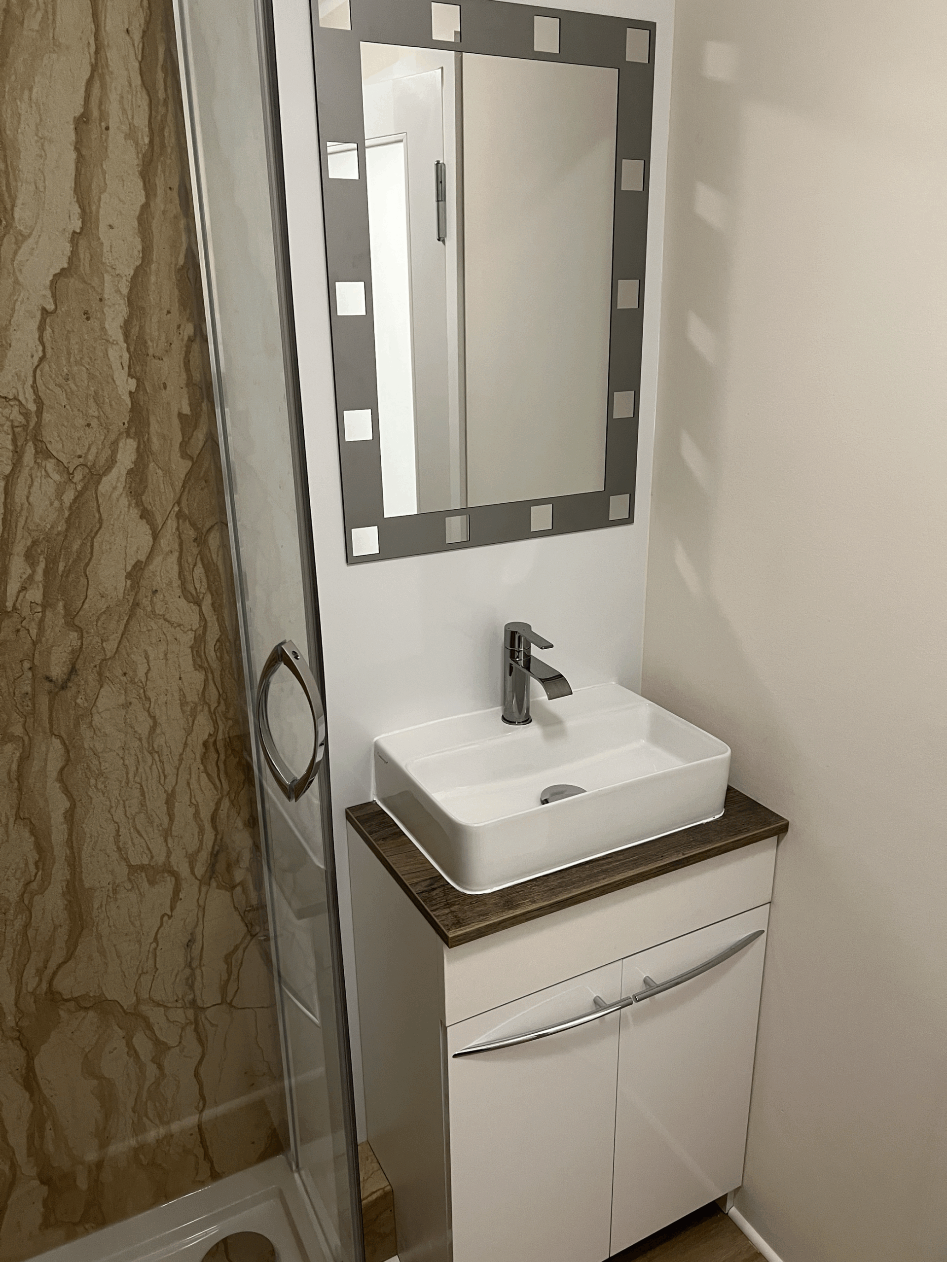 Das Flexmobil Home ist mit moderner und zuverlässiger Technik ausgestattet. Die integrierte Schmutzwasser-Hebeanlage ermöglicht eine Förderung von Abwasser über bis zu 6 m Höhenunterschied und bis zu 50 m horizontale Strecke ideal, wenn die Anschlusssituation vor Ort nicht optimal ist.