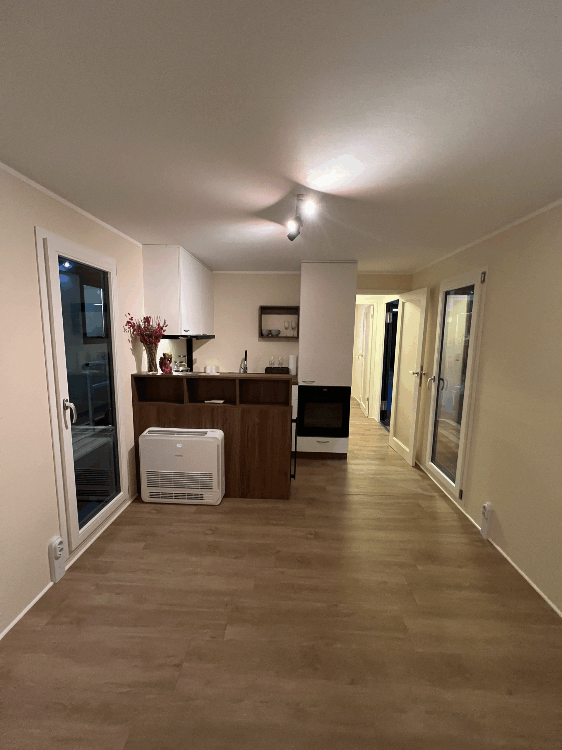 2kW PV Anlage // Hisense Wärmepumpe // Medienaschlüsse vorhanden ( Frischwasser, Abwasser und CEE Stromanschluss)// Vinylboden verklebt // Queensize Bett 1,40m x 2,00m // Einbauschränke mit Staufächern und Wandregalen // Polster // Teilfolierung // zwei Zimmer // Induktionsherd // Weinkühler